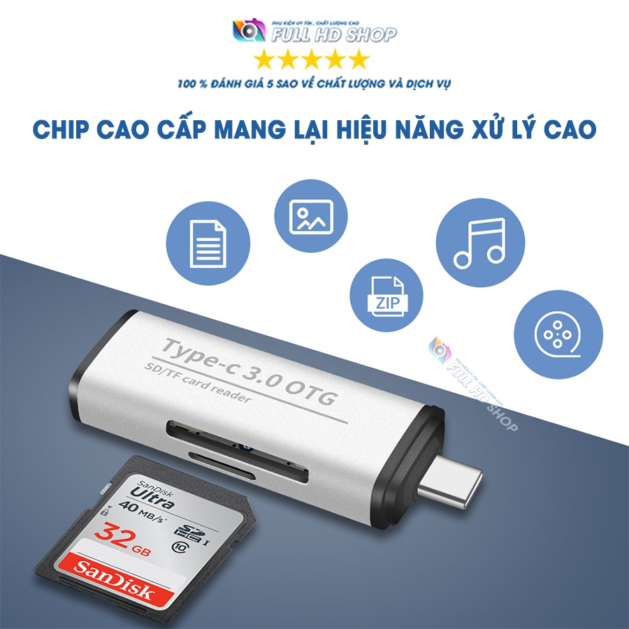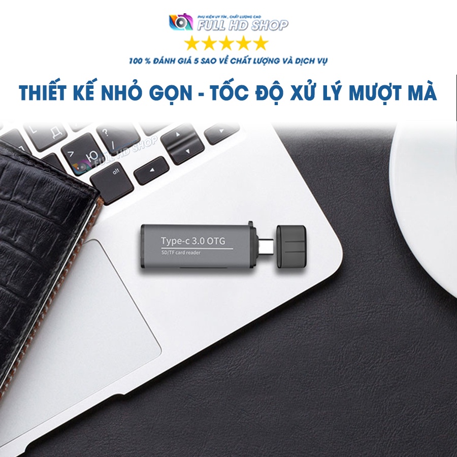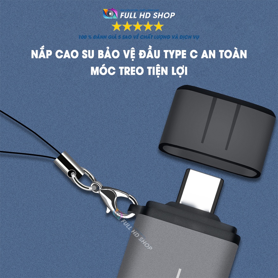 Hub Chuyển Đổi Type C sang USB 3.0 Tích hợp Đầu đọc thẻ SD/Micro SD chân Type C - Full HD Shop Mã HD09