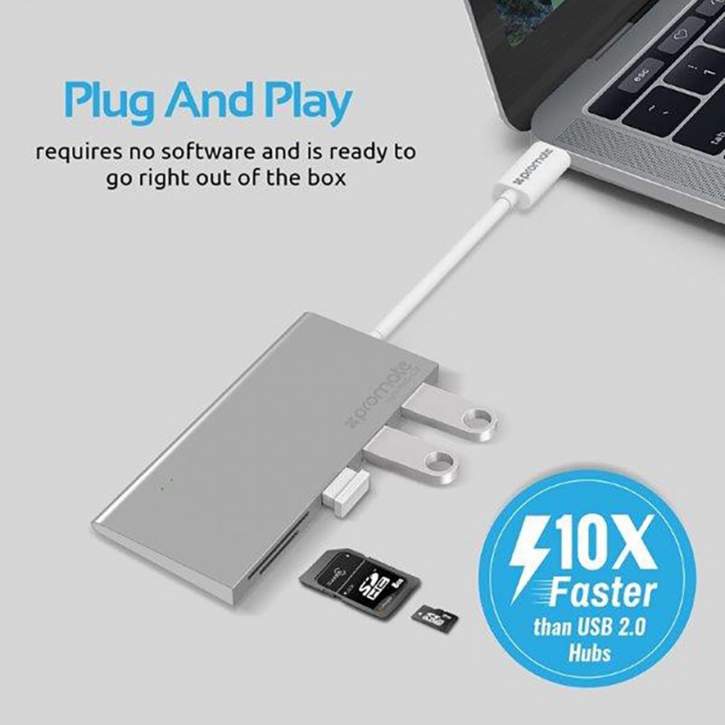 Máy tính & Laptop > Thiết Bị Lưu Trữ > USB & OTG || Bộ Hub chuyển đổi Promate Type-C sang USB 3.0 / Type-C / SD / MicroSD Đa Năng cho SurfaceCòn hàng
