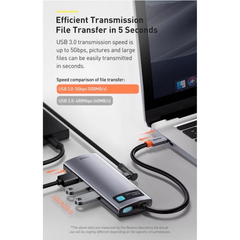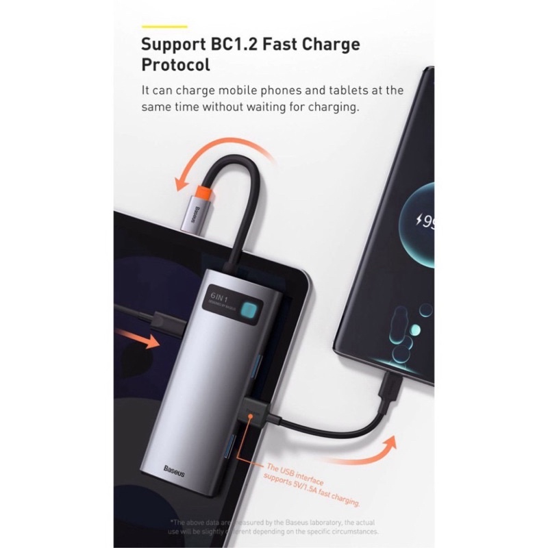 Bộ Hub chuyển đổi Type C Baseus 6 in 1 USB 3.0 x 3+ HDMI 4K/30Hz + LAN RJ45 + Type C PD, hoạt động với hiệu quả cao* * Hub 4 in 1. Gồm 1 Cổng Usb 3.0, 1 Cổng Usb 2.0 , 1 Cổng HDMI 4K/30Hz Và 1 Cổng Sạc Type C