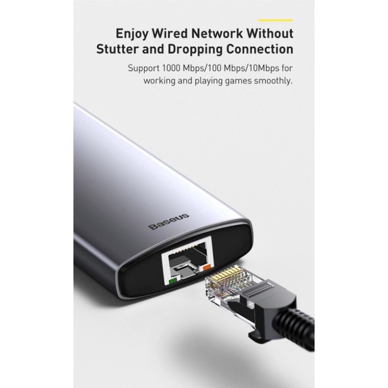 Cáp Chuyển Hub Type C Baseus 6 in 1 (TYPE C To USB 3.0 x 3 + HDMI 4K + Type C PD + LAN RJ45)