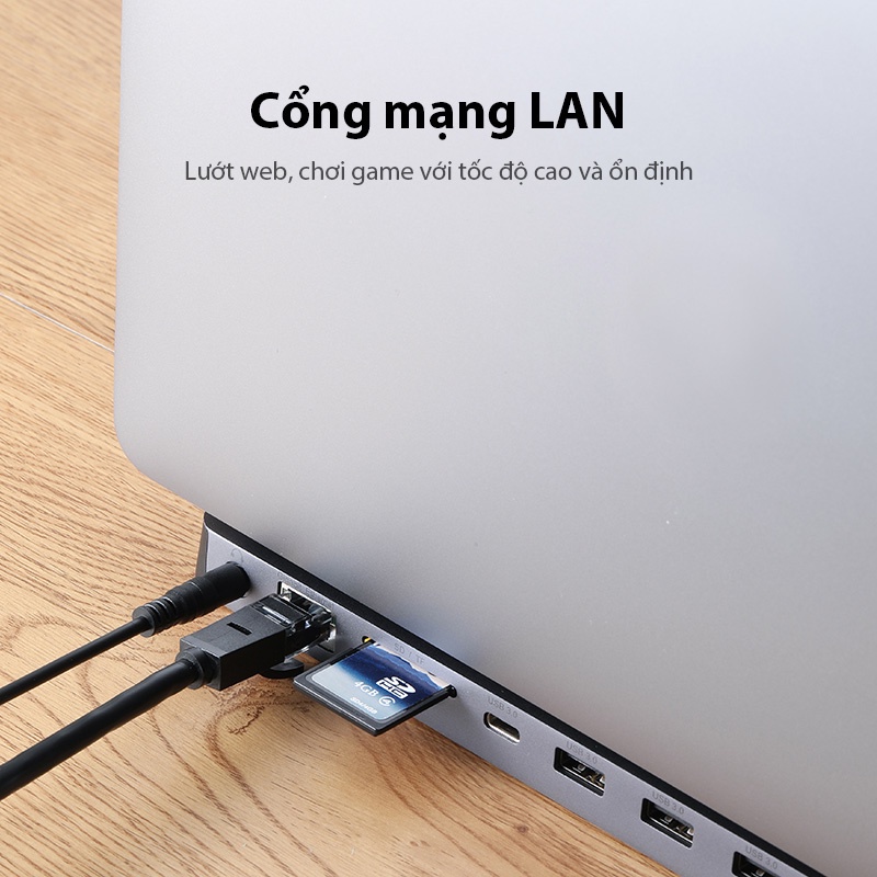 Tích hợp làm giá đỡ: đặt HUB dưới laptop để trở thành giá đỡ.