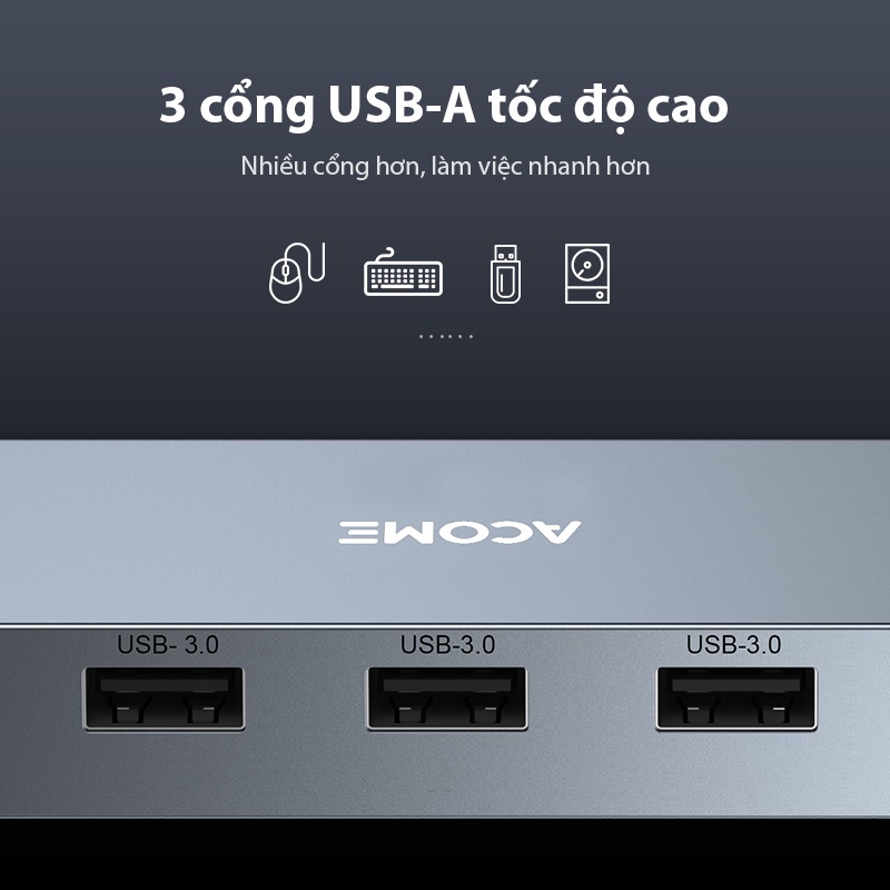 3 cổng USB-A tốc độ cao: Nhiều cổng hơn làm việc nhanh hơn.