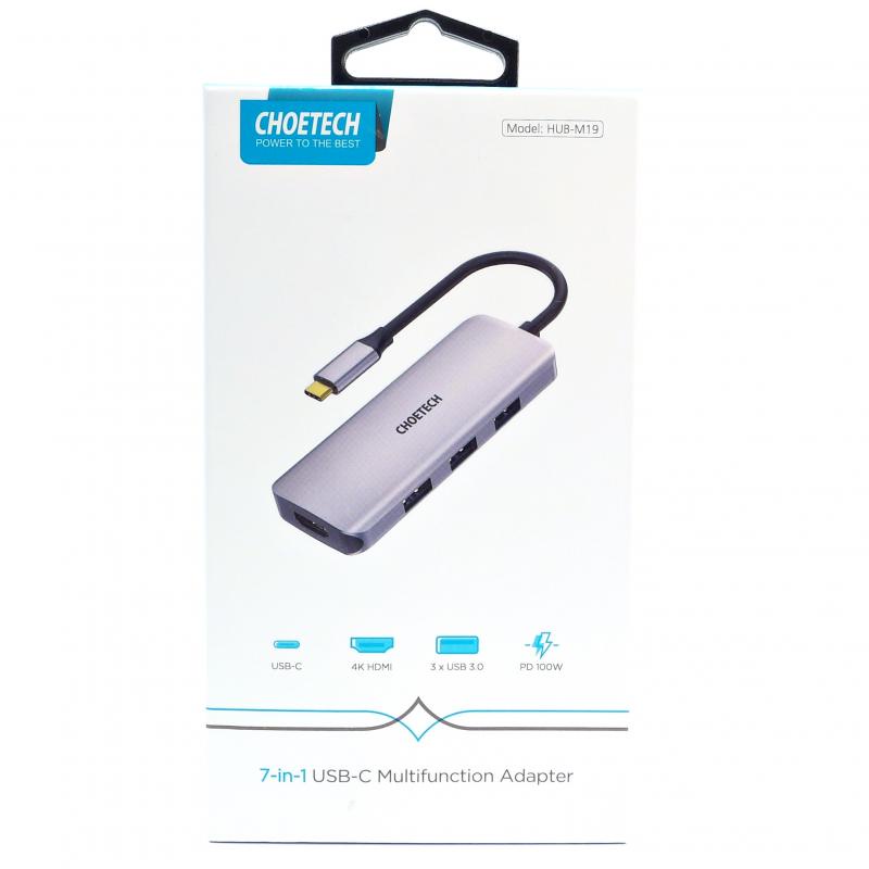 Máy tính & Laptop > Phụ Kiện Máy Tính > Bộ chia cổng USB & Đọc thẻ nhớ || Hub Chuyển Đổi Type C To HDMI 4K, Type C 100W, 3 USB 3.0, SD/TF (7 trong 1) CHOETECH HUB-M19 - Hàng Chính HãngCòn hàng