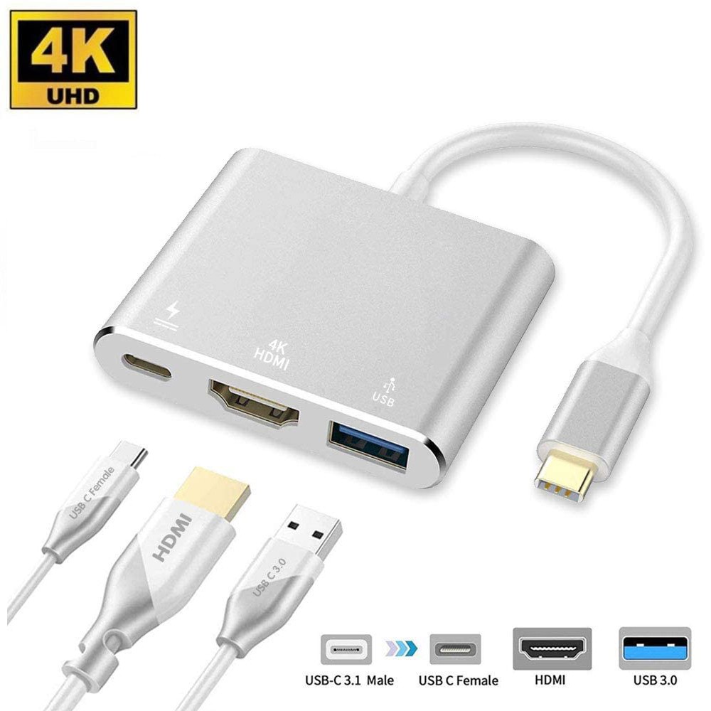 Hub chuyển đổi USB Type C 3 IN 1 ra HDMI, USB 3.0, Type C