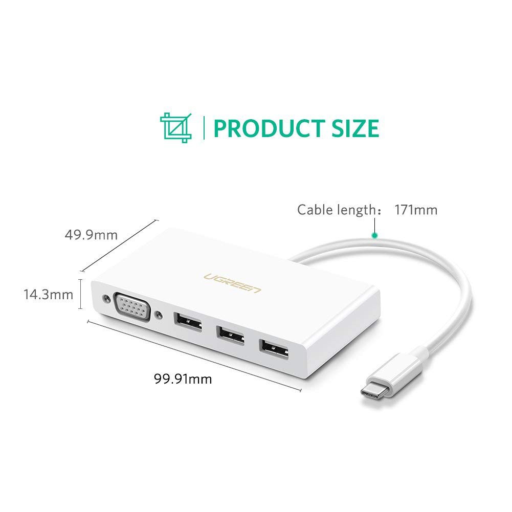 Ugreen 40375 là thiết bị mở rộng USB Type-C ra các cổng VGA và Hub USB 3.0, là giải pháp hoàn hảo giúp chiếc MacBook Pro, New MacBook, Dell XPS 15 13, HP Spectre Envy, Samsung S9 S8... phục vụ cùng lúc nhiều nhu cầu giải trí, công việc khác nhau một cách tiện lợi hơn, với chất lượng cao cấp đảm bảo mọi tín hiệu luôn ở mức tối đa.Thông số kỹ thuật: