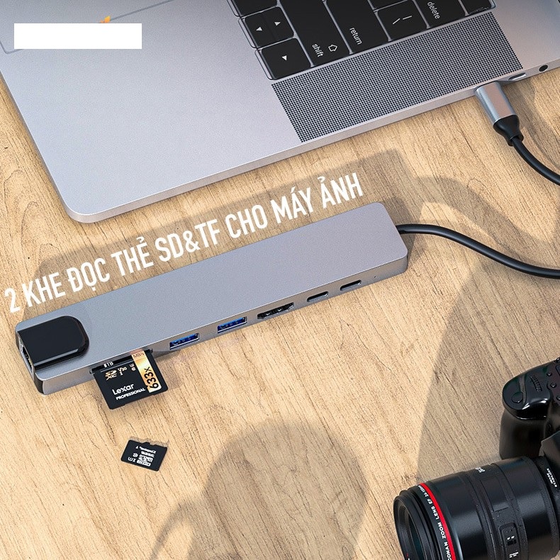 Hub chuyển Type-C 8in1 - bộ chuyển đổi sang HDMI 4k/USB/TypeC dùng cho Macbook, iPad, Smart Phone