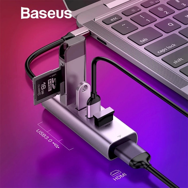 Giới thiệu Hub chuyển Type C ra 4 cổng USB 3.0 và HDMI 4k/30hz Baseus Chất Liệu Hợp Kim Nhôm Cao Cấp