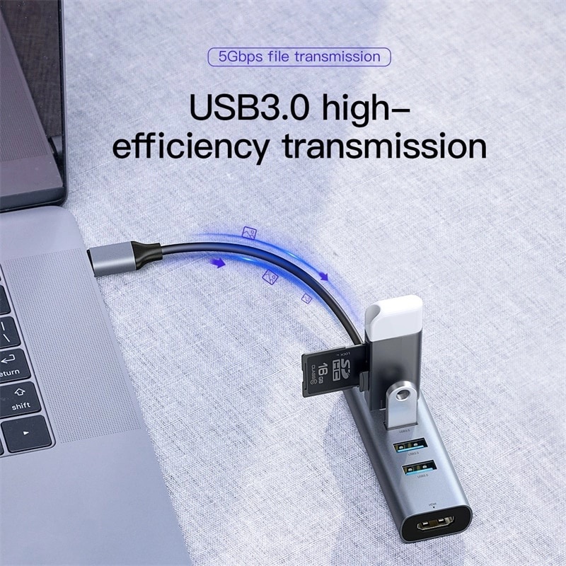 - Được tích hợp chip xử lý hình ảnh tốc độ cao , HUB chuyển Baseus Enjoy Series hỗ trợ xuất hình ảnh độ phân giải 4K - 30Hz . Sản phảm còn được tích hợp 4 cổng USB 3.0 tốc độ cao , cho phép mở rộng cổng giao tiếp. Người sử dụng không phải lo lắng thiếu cổng kết nối nữa . Cổng USB 3.0 có tốc độ truyền dữ liệu lên đến 5Gbps , tương thích với hầu hết các thiết bị ngoại vi giao tiếp qua cổng USB 2.0 và 3.0 (như chuột, bàn phím, thiết bị lưu trữ,...)
