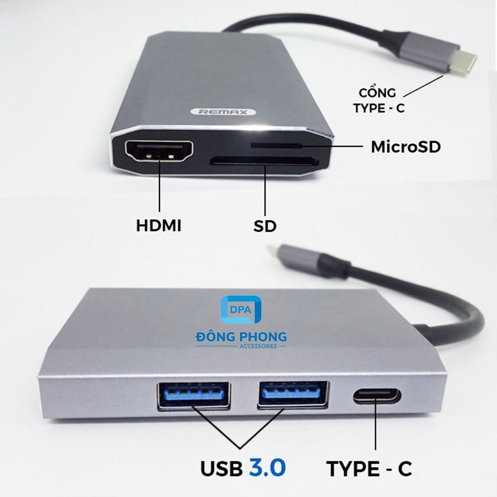 [Mã 44ELSALE2 giảm 7% đơn 300K] HUB Chuyển Type C Ra USB 3.0, HDMI, USB C, Thẻ Nhớ Chính Hãng Remax Tốc Độ Cao