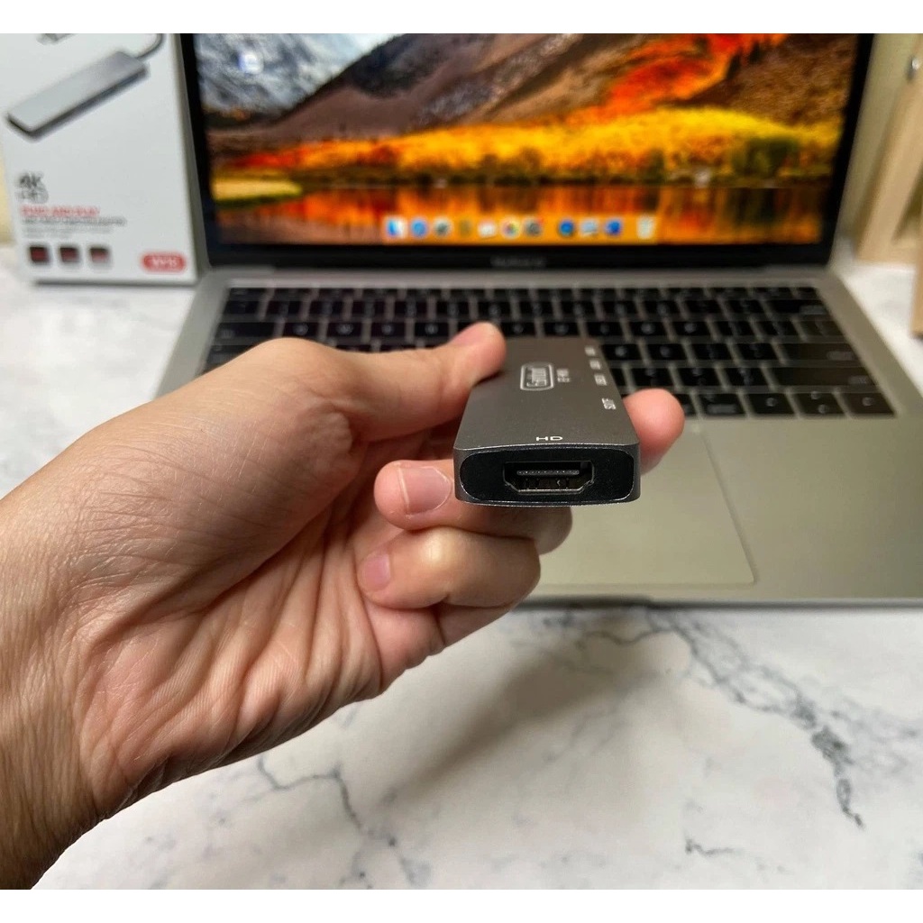 - Là bộ chuyển đổi từ cổng USB TypeC 6in1 trên các dòng laptop, PC, hay chiếc điện thoại smartphone... có hỗ trợ cổng USB TypeC 3.0 sang cổng HDMI và các cổng chuẩn giao tiếp hiện nay như: USB 3.0, đầu lọc thẻ SD và TF