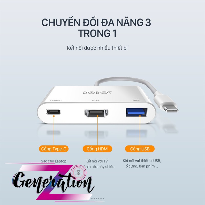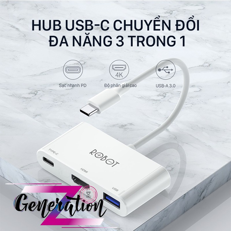 HUB CHUYỂN ĐỔI CỔNG TYPE-C ĐA NĂNG 3 TRONG 1 ROBOT HT430Model: HT430