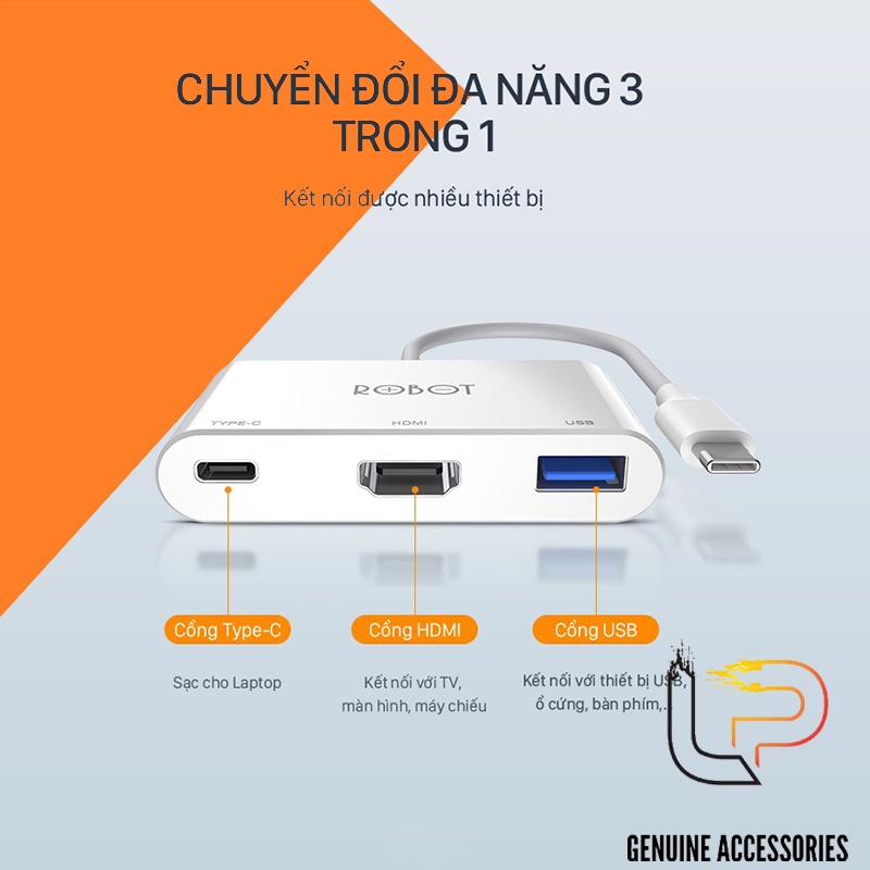 HUB CHUYỂN ĐỔI CỔNG TYPE-C ĐA NĂNG 3 TRONG 1 ROBOT HT430Model: HT430