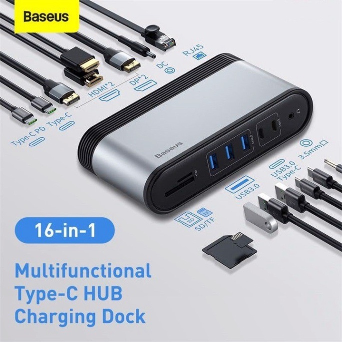 Giới thiệu Bộ Hub cổng chuyển đổi máy tính đa năng 16 trong 1. Thương hiệu cao cấp Baseus CAHUB-BG0G - Hàng Chính Hãng {CHÍNH HÃNG