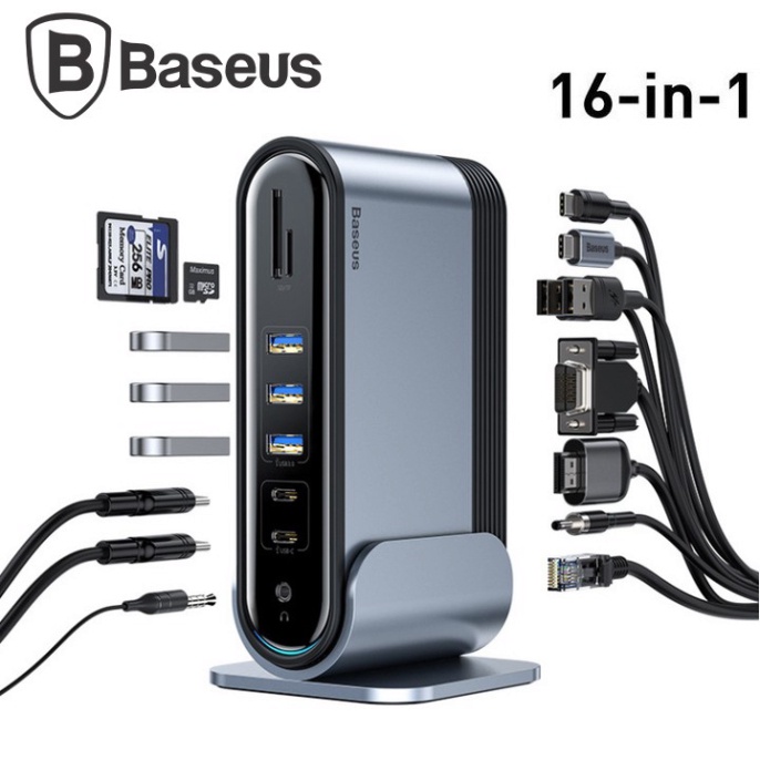 Máy tính & Laptop > Phụ Kiện Máy Tính > Bộ chia cổng USB & Đọc thẻ nhớ || Bộ Hub cổng chuyển đổi máy tính đa năng 16 trong 1. Thương hiệu cao cấp Baseus CAHUB-BG0G - Hàng Chính Hãng {CHÍNH HÃNGCòn hàng