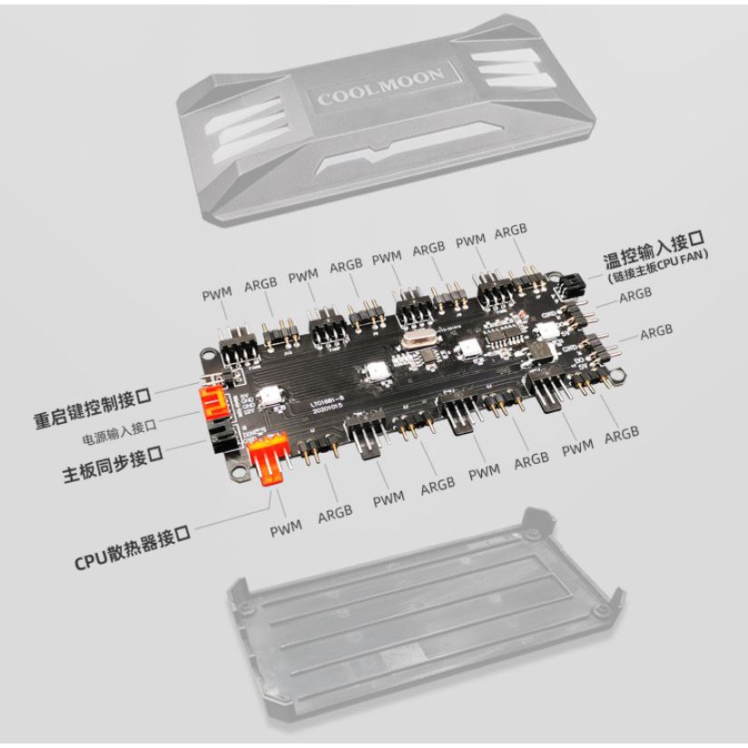 Bộ Hub Coolmoon P-ARGB Dùng Cho Fan Led RGB Có Điều Tốc PWM - Hỗ Trợ Sync Main