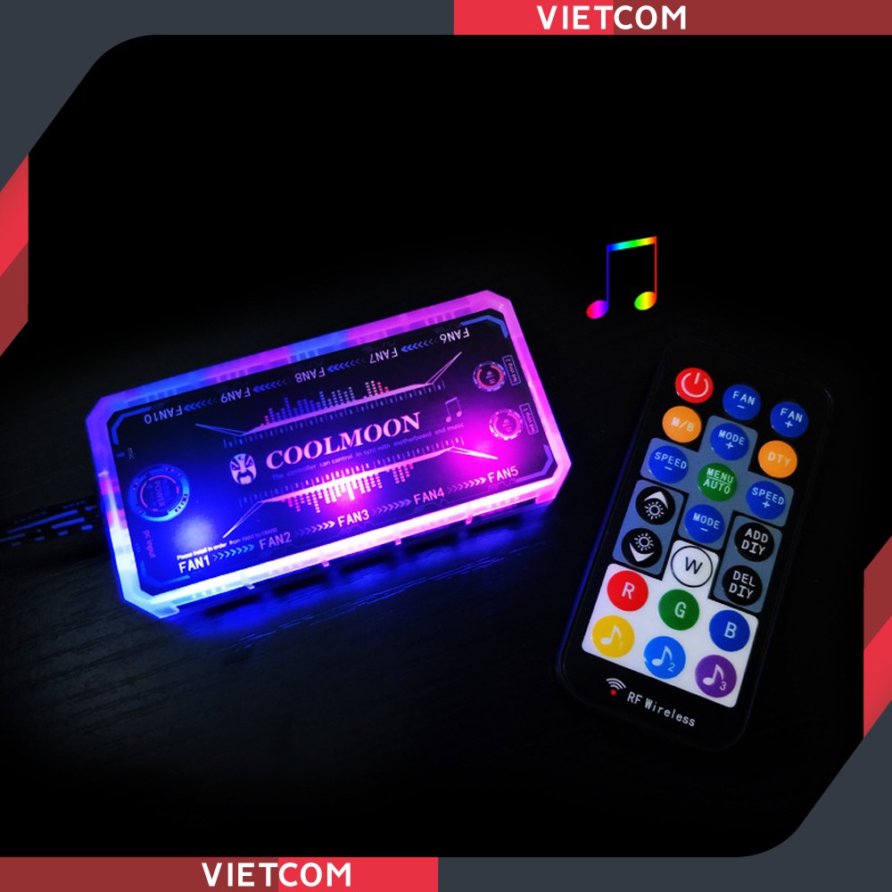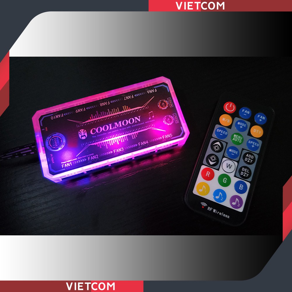☑️1. Hub Coolmoon - Hub cắm được 10 Fan và 2 Dây Led, Hub có Mic thu âm để hub nghe và nháy theo nhạc