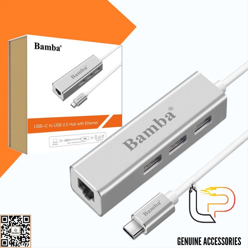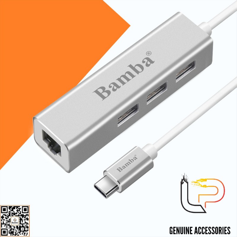 Máy tính & Laptop > Phụ Kiện Máy Tính > Bộ chia cổng USB & Đọc thẻ nhớ || HUB CUYỂN USB TYPE-C RA 3 CỔNG USB 2.0 + RJ45 BAMBA B1Còn hàng