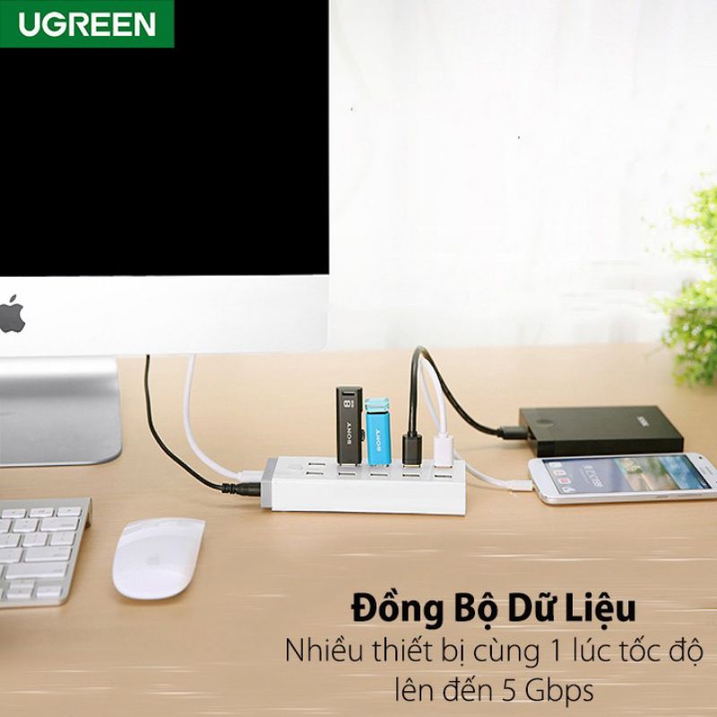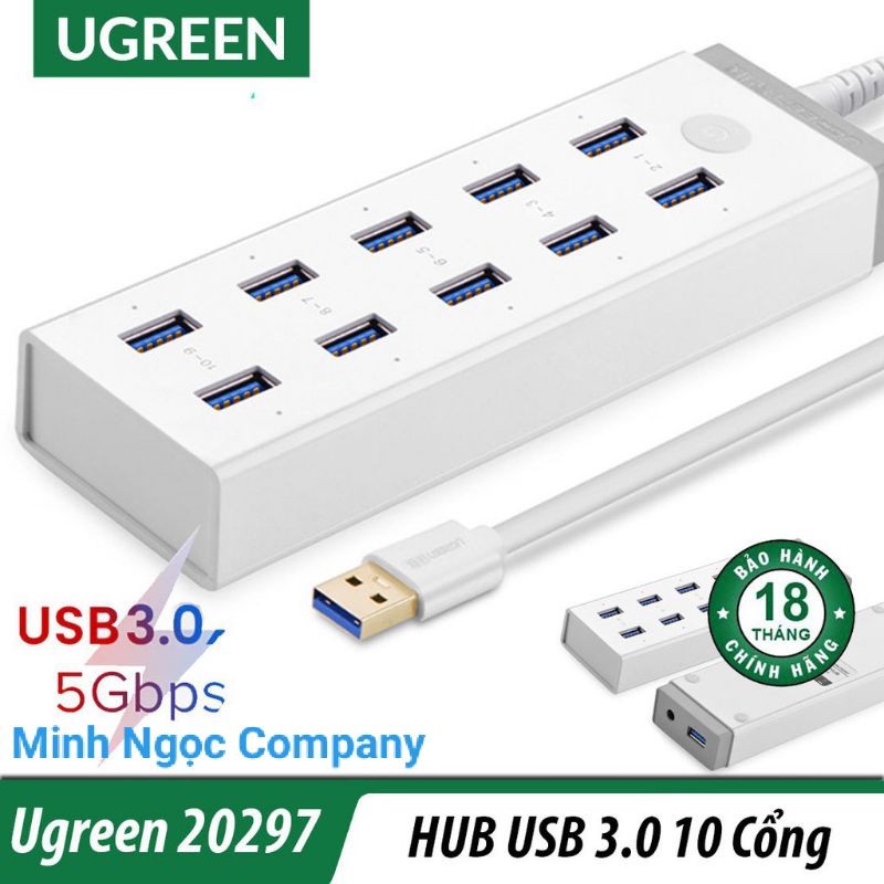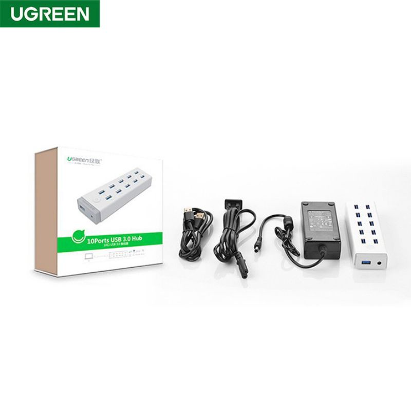 Hub đa chức năng 10 cổng USB 3.0 Ugreen 20297 kèm sạc điện thoại, máy tính bảng...Thông tin sản phẩm: Bộ chia USB 10 cổng USB 3.0 Ugreen 20297