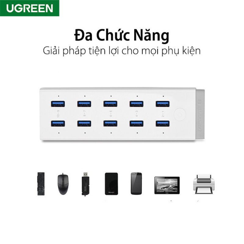 Hub đa năng 10 cổng USB 3.0 có nút bật tắt, kèm sạc điện thoại, máy tính bảng Ugreen 20297 CR116 - Hàng Chính Hãng