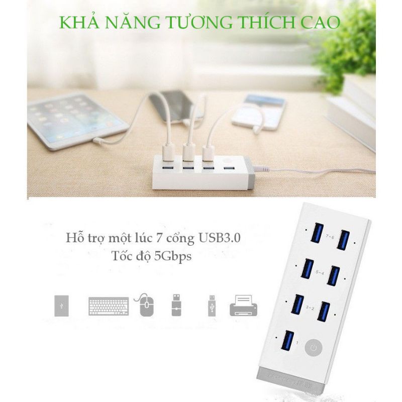 Máy tính & Laptop > Phụ Kiện Máy Tính > Bộ chia cổng USB & Đọc thẻ nhớ || Hub đa năng 7 cổng USB 3.0 có nút bật tắt, kèm sạc điện thoại, máy tính bảng, hỗ trợ nguồn 12A/2V Ugreen 20296 CR116Còn hàng