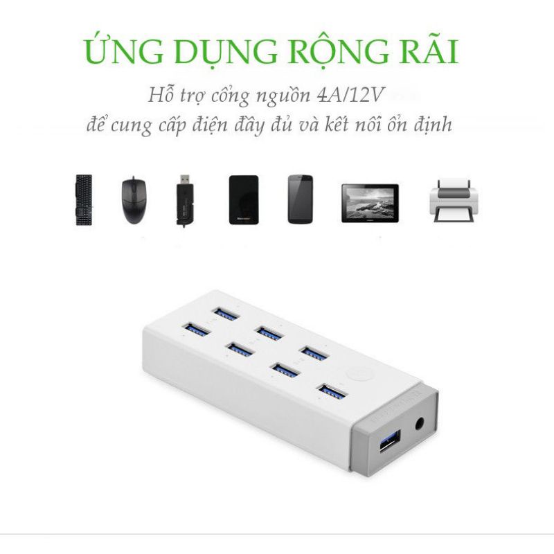 Hub đa năng 7 cổng USB 3.0 có nút bật tắt, kèm sạc điện thoại, máy tính bảng, hỗ trợ nguồn 12A/2V Ugreen 20296 CR116