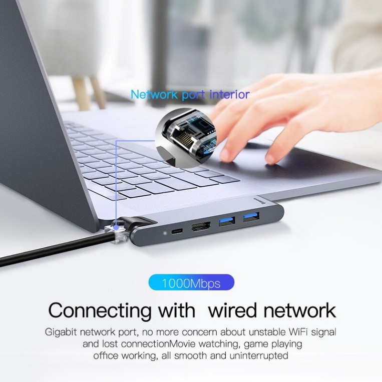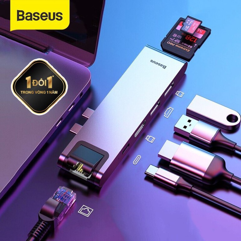 Hub Đa Năng 7 In 1 Baseus Thunderbolt 3 HUB USB C Loại Kép-C 7in1 USB 3.0 Loại C HUB HDMI RJ45 Adapter Đối Với Macbook Pro OTG HUB USB Splitter 3.0TÍNH NĂNG CƠ BẢN Hub Đa Năng 7 In 1 Baseus Thunderbolt 3 HUB USB C Loại Kép-C 7in1 USB 3.0 Loại C HUB HDMI RJ45 Adapter Đối Với Macbook Pro OTG HUB USB Splitter 3.0
