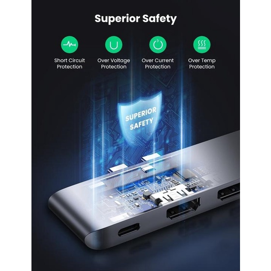 Tính năng chính hub USB Type C to 2 HDMI, USB 3.0, đọc thẻ SD/TF hỗ trợ sạc USB C Ugreen 80548