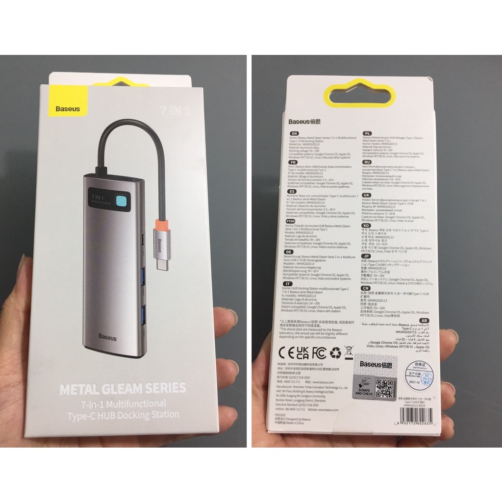 Máy tính & Laptop > Phụ Kiện Máy Tính > Bộ chia cổng USB & Đọc thẻ nhớ || [Hub đa năng 7 trong 1] Bộ chia cổng type-C Baseus Metal Gleam Series WKWG020113Còn hàng