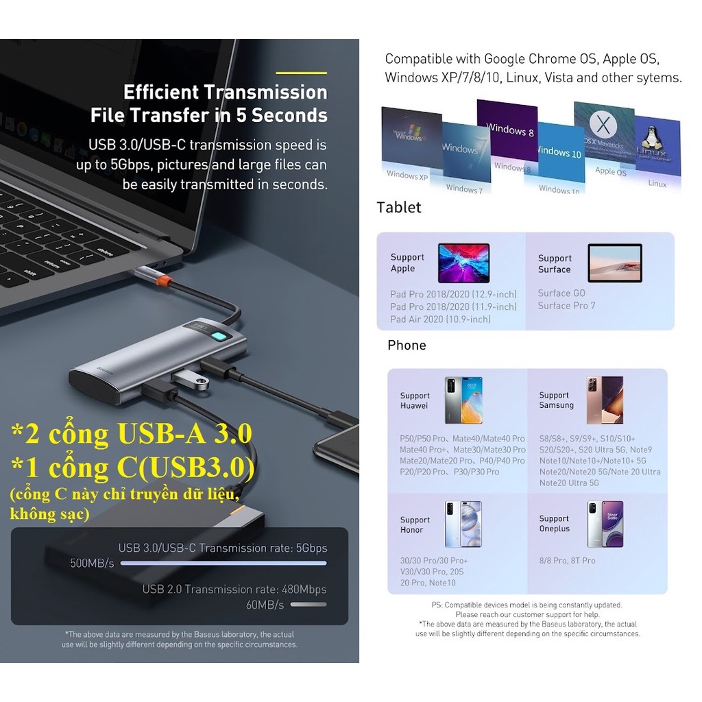 Thương hiệu: Baseus | Xem thêm các sản phẩm Hub USB của BaseusMô tả ngắn