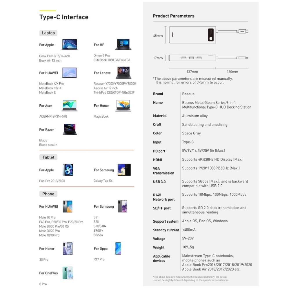 Hub/ bộ chia cổng type-C đa năng 9 trong 1 thương hiệu Baseus ,Name: Metal Gleam Series9 In 1 Hub Docking Station