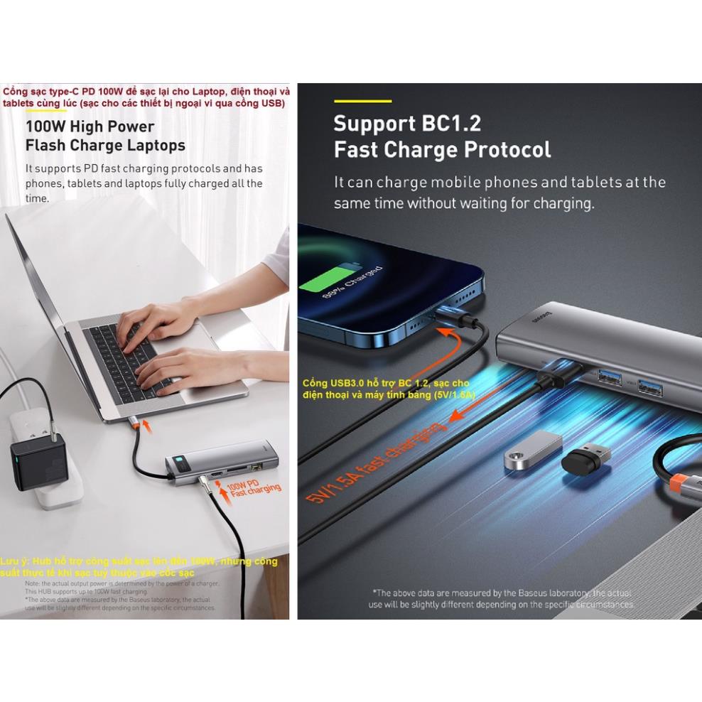 Máy tính & Laptop > Phụ Kiện Máy Tính > Bộ chia cổng USB & Đọc thẻ nhớ || [Hub đa năng 9 trong 1] Bộ chia cổng type-C Baseus Metal Gleam Series CAHUB-CU0GCòn hàng