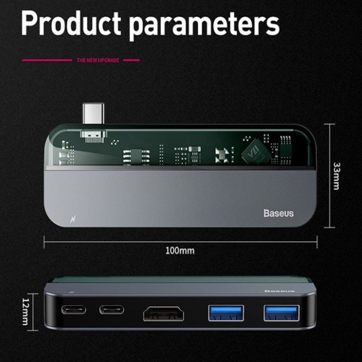 - Supports high-speed data transmission with speeds up to 5Gbps via USB 3.0 port. Baseus Transparent Series 5 in 1 Multifunctional HUB makes it easy for you to connect your smartphone/ Tablet/ Macbook (type C) to peripheral devices such as printers, keyboards, mice, etc. Synchronization, sharing High-definition data/photos/videos with external storage drives will be easier than ever.