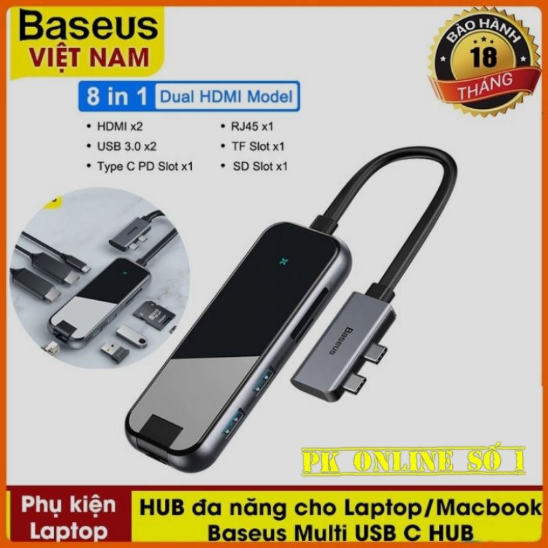 🌟 Hàng chính hãng Baseus, bảo hành 12 tháng lỗi 1 đổi 1 (quý khách giữ tem bảo hành, vỏ hộp, cáp sạc...để bảo hành. Không nhận bảo hành đối với sản phẩm mất tem bảo hành, sản phẩm móp, méo, vỡ, biến dạng...do tác động của người sử dụng)Hub Đa Năng Baseus Type-C Multifunctional HUB Adapter 8 IN 1 USB C HUB To HDMI USB 3.0 USB HUB Type-C Đầu Đọc Thẻ Kính Bộ Chia USB 8 Cổng Data Transfer 5Gbps Cho Macbook Máy Tính Xách Tay Hub USB
