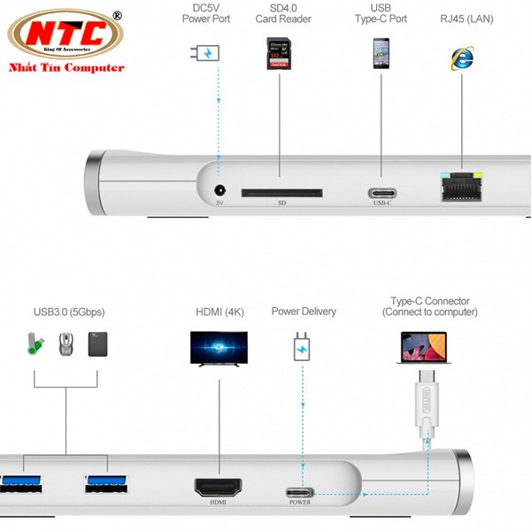 Giới thiệu Hub đa năng Unitek Y-3708 từ TypeC 3.1 ra USB/thẻ SD/LAN/HDMI