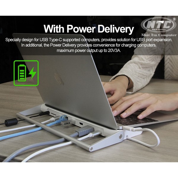 Hỗ trợ USB Power Delivery, cho phép bạn sạc đồng thời máy tính của mình trong khi sử dụng trạm nối.