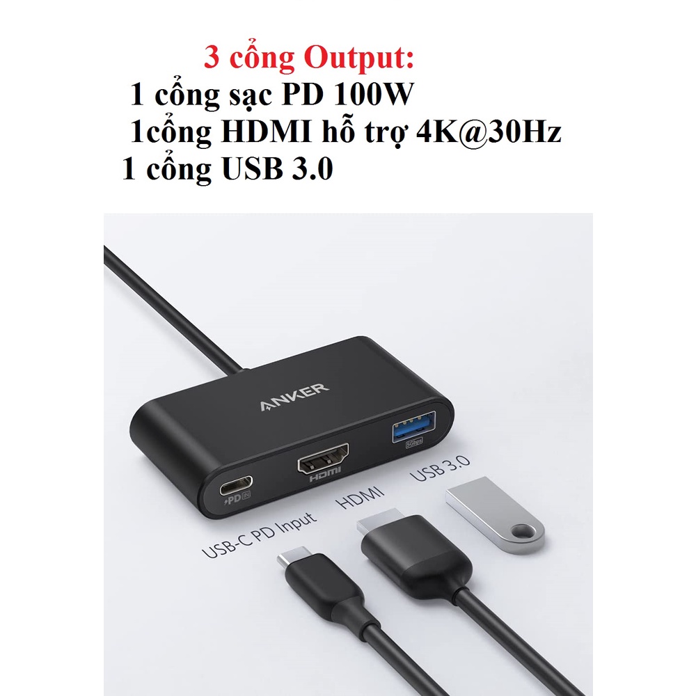 Máy tính & Laptop > Phụ Kiện Máy Tính > Bộ chia cổng USB & Đọc thẻ nhớ || Hub / Đầu chia cổng Type-C 3 trong 1 Anker PowerExpand A8339Còn hàng