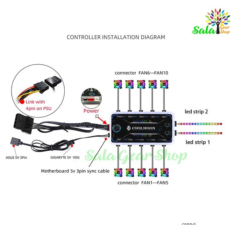 Máy tính & Laptop > Linh Kiện Máy Tính > Bộ Lưu Điện || Bộ Hub + Điều Khiển Coolmoon RGB - Music Sync -Sync Main-Nháy led theo nhạcCòn hàng