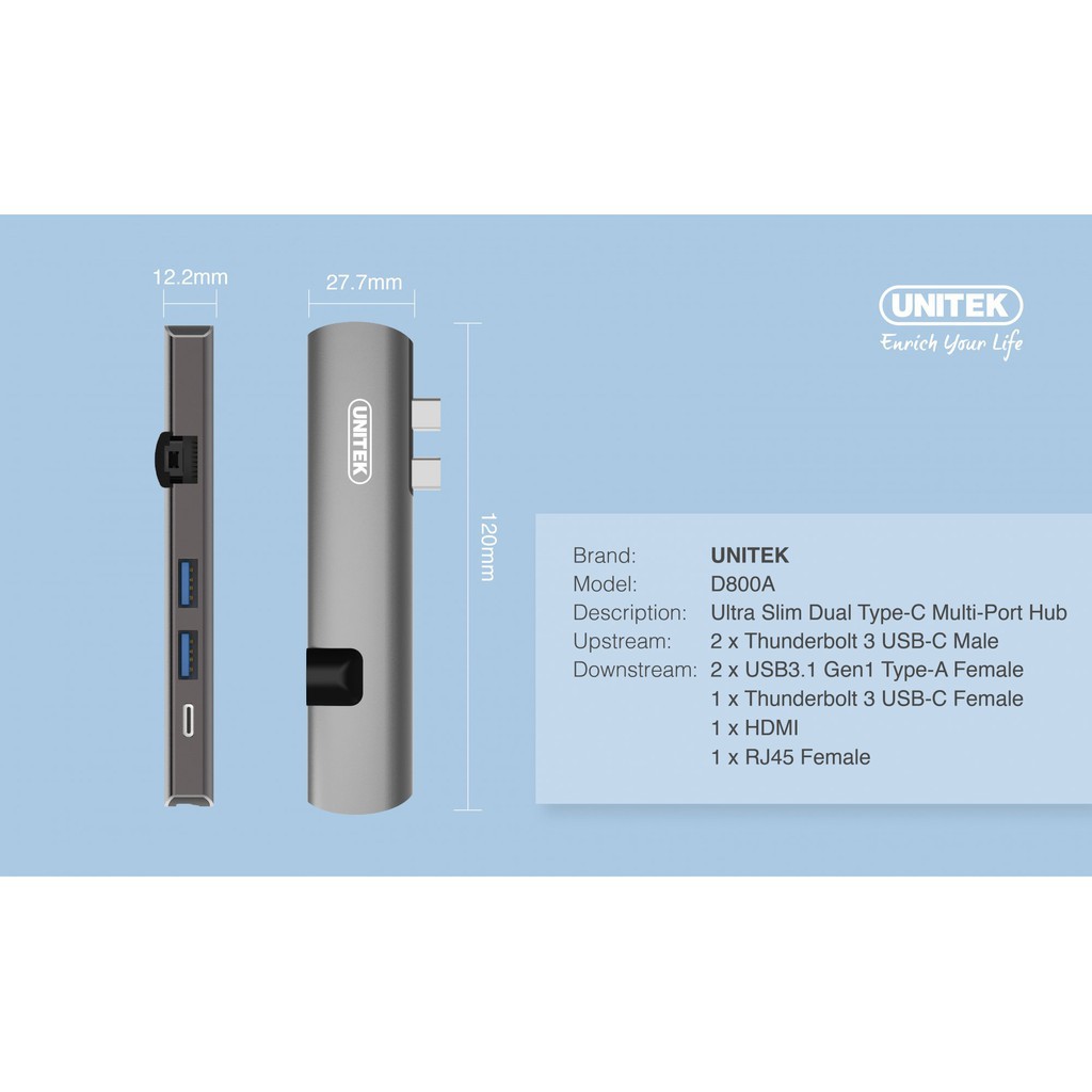 Máy tính & Laptop > Phụ Kiện Máy Tính > Bộ chia cổng USB & Đọc thẻ nhớ || Hub Ethernet 5 trong 2 USB-C dành cho MacBook ở tốc độ 40Gbps với HDMI và Phân phối điện 100W UNITEK D008ACòn hàng