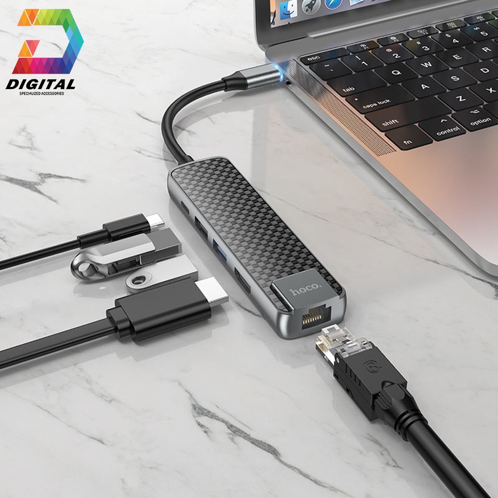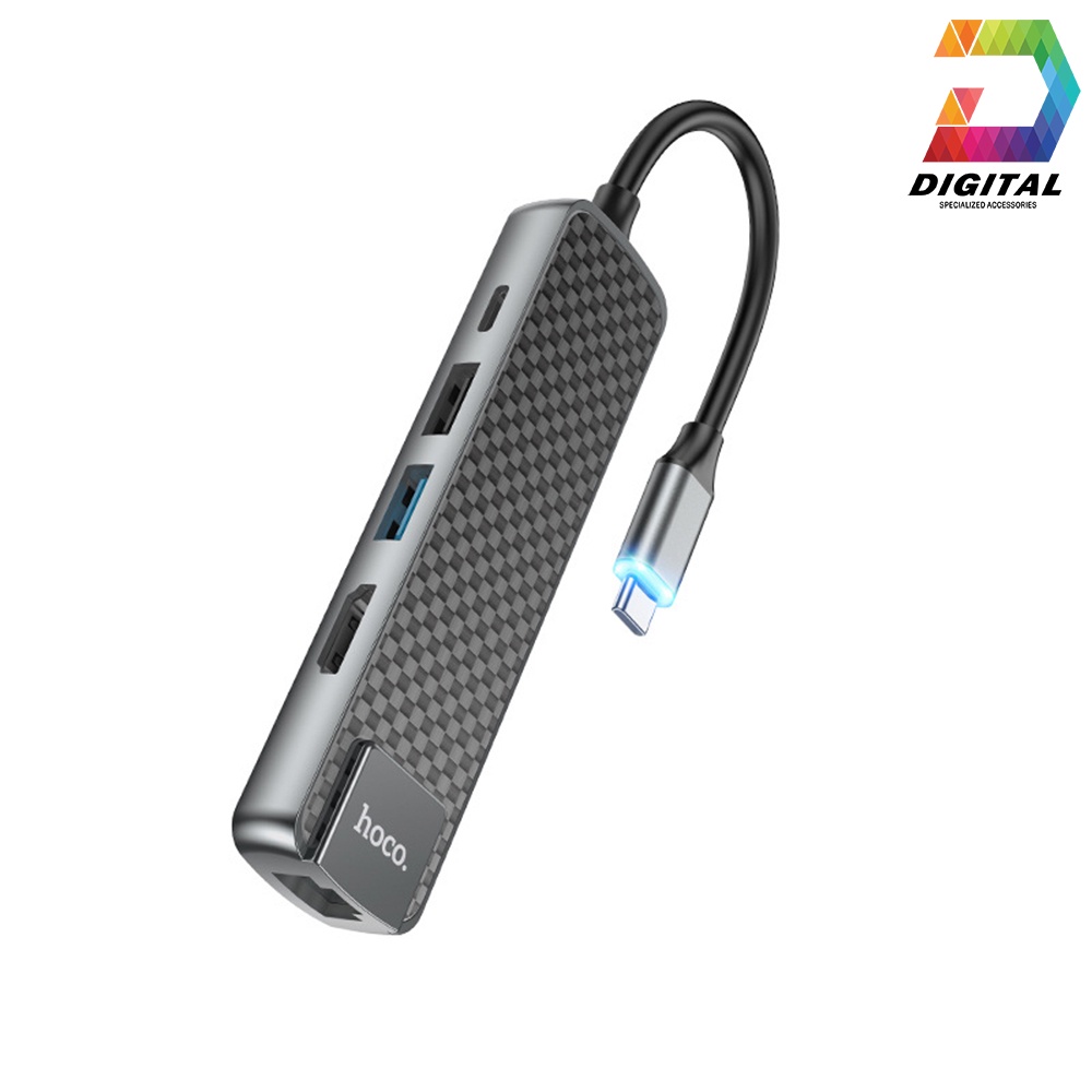 Hub Hoco HB23 5 in 1 Chuyển Type C Ra USB 3.0 + HDMI + RJ45 + PD60W Chính Hãng ( USB C Multimedia Adapter )