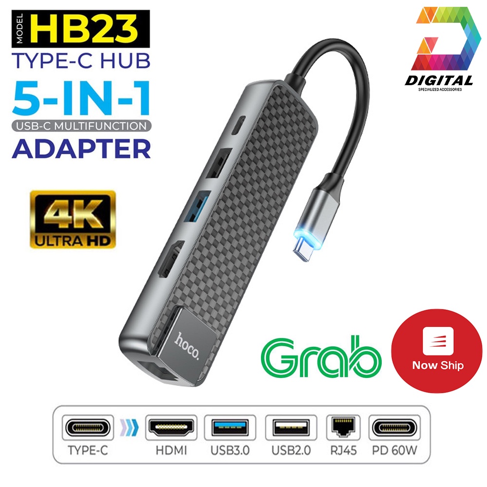 - Hub Hoco HB23 5 in 1 Chuyển Type C Ra USB 3.0 + HDMI + RJ45 + PD60W Chính Hãng có độ ổn định cao, tương thích với hầu hết các thiết bị từ Android, Windows cho đến Mac OS. Chỉ cần cắm vào và sử dụng (Plug and Play), không cần cài đặt driver hay software hỗ trợ.