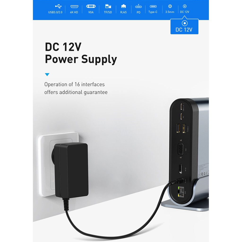 Mô Tả sản phẩm : HUB 16 in 1 chuyên dụng chính hãng Baseus Working Station Multifunctional Type-C HUB Adapter
