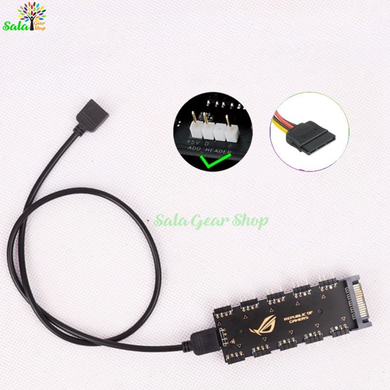 Hub mở rộng 10 cổng led 5V 3Pin ROG kèm cổng cấp nguồn SATA