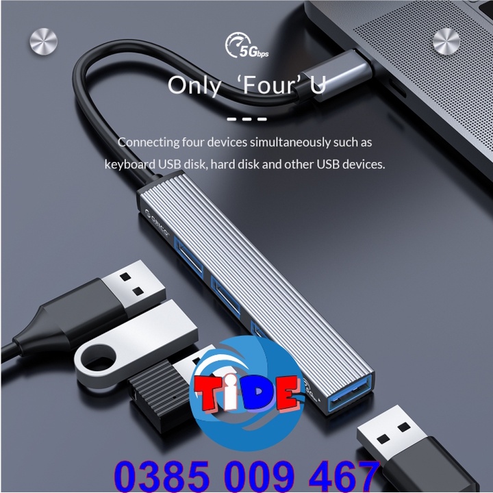 Hub Orico AH-13 – Bộ chia 4 cổng USB 3.0 Cáp đầu vào Type-C ( Type-C To USB3.0 HUB ) – Bảo hành 12 thángTHÔNG TIN SẢN PHẨM:
