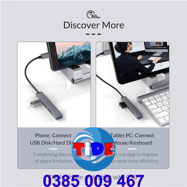 Giới thiệu Hub Orico AH-13 – Bộ chia 4 cổng USB 3.0 Cáp đầu vào Type-C ( Type-C To USB3.0 HUB ) – Bảo hành 12 tháng