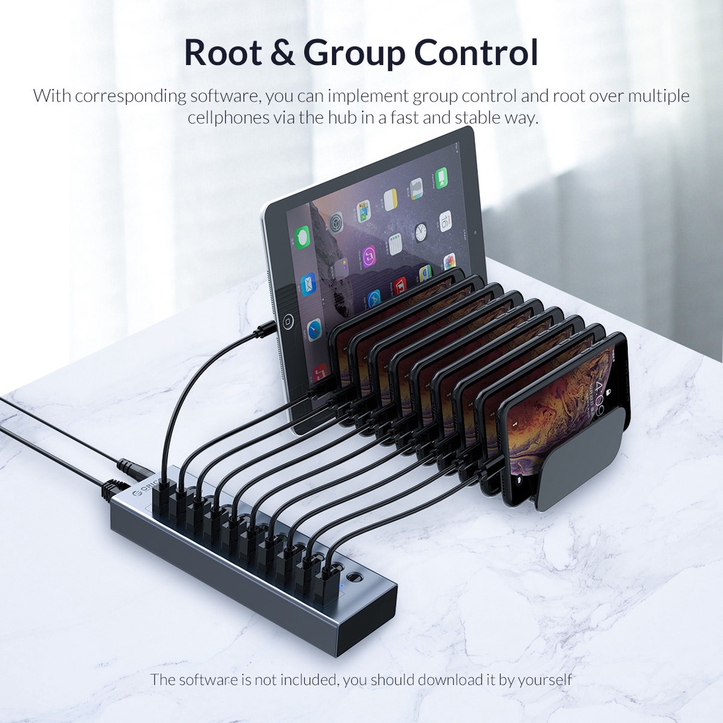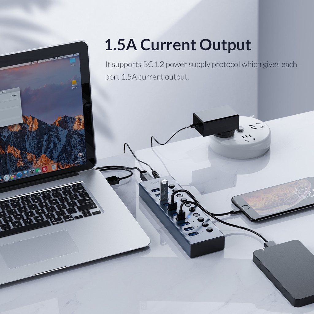 Hub Orico BT2U3 USB 3.0 7/10/13/16 Công Tắc Bật/Tắt Nguồn 12v Kèm Sạc Cho Máy Tính Bằng Nhôm - Hàng Chính Hãng