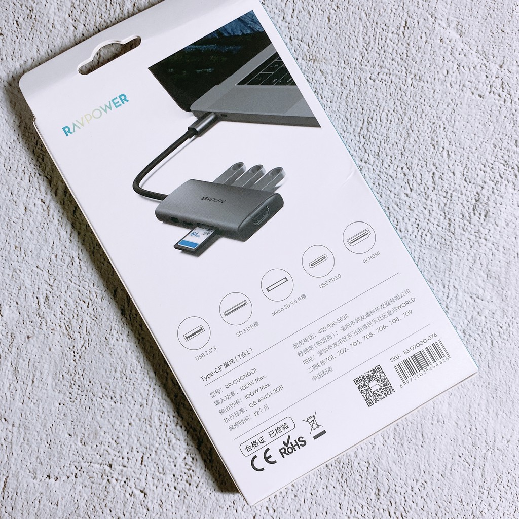 Máy tính & Laptop > Phụ Kiện Máy Tính > Bộ chia cổng USB & Đọc thẻ nhớ || Hub RAVPower Type-C 7 in 1 cho Laptop Macbook Air Pro Mac (Type-C to HDMI/ USB3.0/ PD 100W) Đầu cáp chuyểnCòn hàng