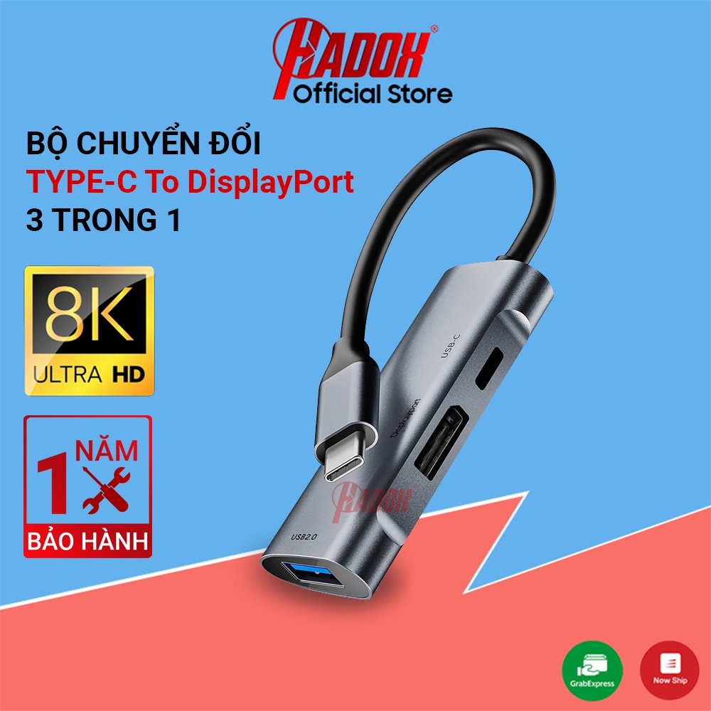 QUY ĐỊNH ĐỔI TRẢ: Hub type c 3in1 8K/4K60Hz - Cổng chuyển đổi hub usb type-c to displayport dp, pd, usb type-c cho laptop, macbook, ipad
