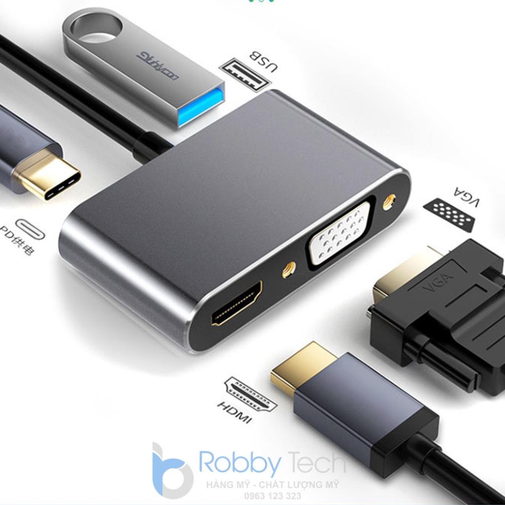 Hub Type C 4 trong 1 Cổng chuyển đổi HUB USB Type-C to HDMI/VGA/USB 3.0/PD Type-C hỗ trợ 4K