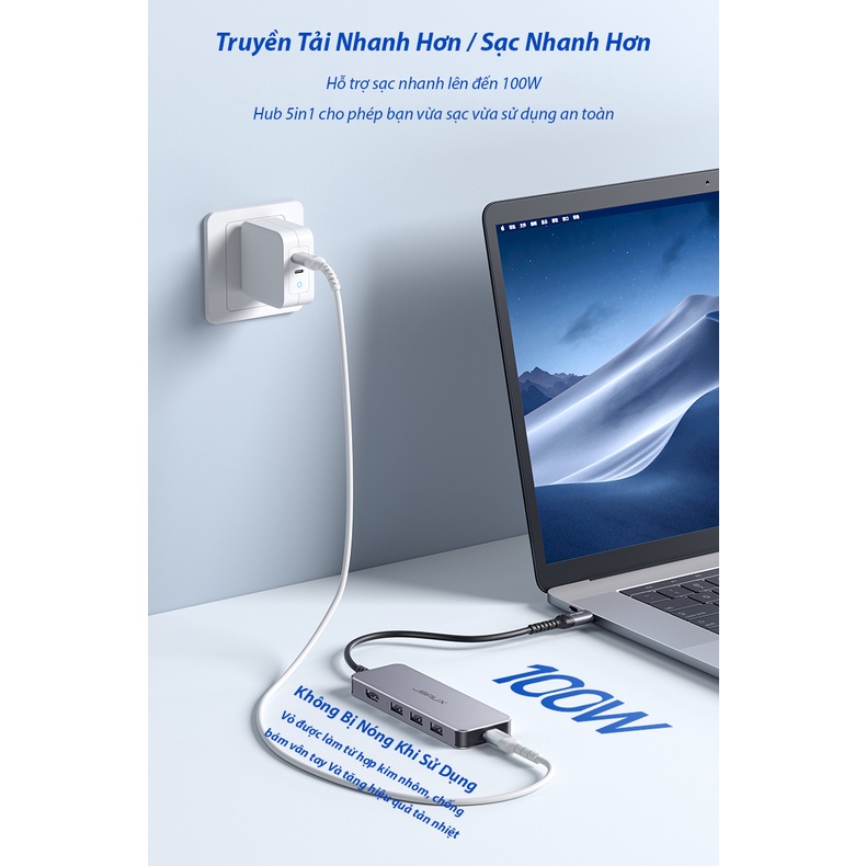 Hub Type-C 5 Trong 1 JSAUX – Bộ Chuyển Đổi Hub Thông Minh USB 3.0 / HDMI / PD Type-C Vừa Sạc Vừa Có Thể Sử Dụng – Cho iPad, Macbook, Laptop, Điện Thoại SamSung-Oppo-Huewei...● Hub Type-C 5 Trong 1 JSAUX là kết hợp đỉnh cao công nghệ cao của JSAUX: Sử dụng con chip thế hệ mới cho phép bạn đồng thời kết hợp nhiều thiết bị mà không sợ sung đột, hư hại. Đồng thời được thiết kế vỏ nhôm tàn nhiệt giúp Hub sử dụng trong 1 thời gian dài mà không bị hư hại
