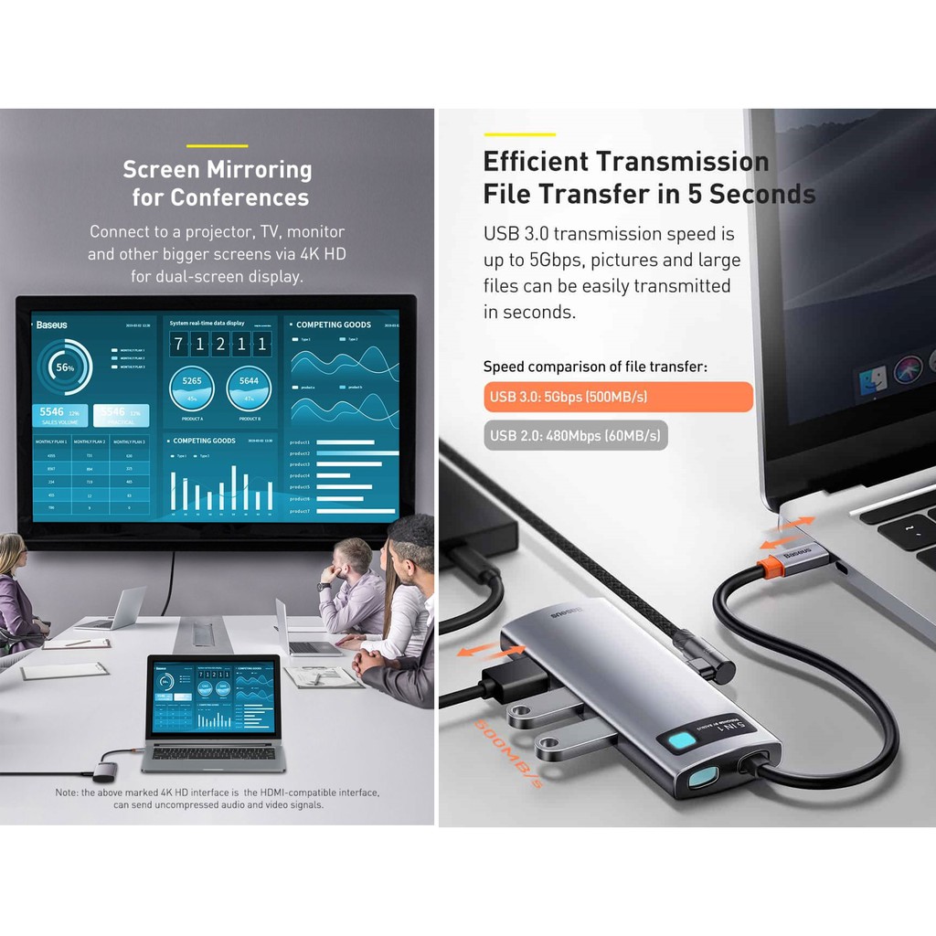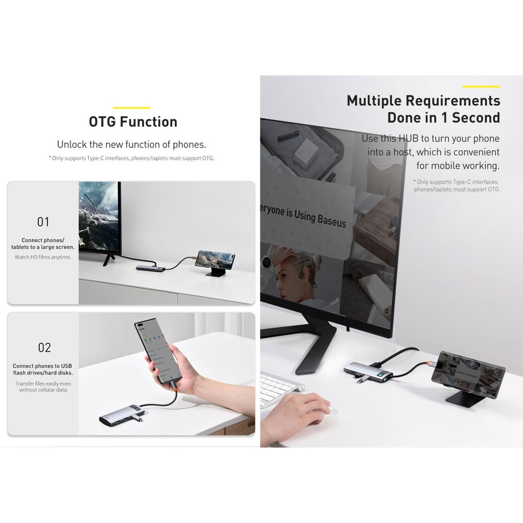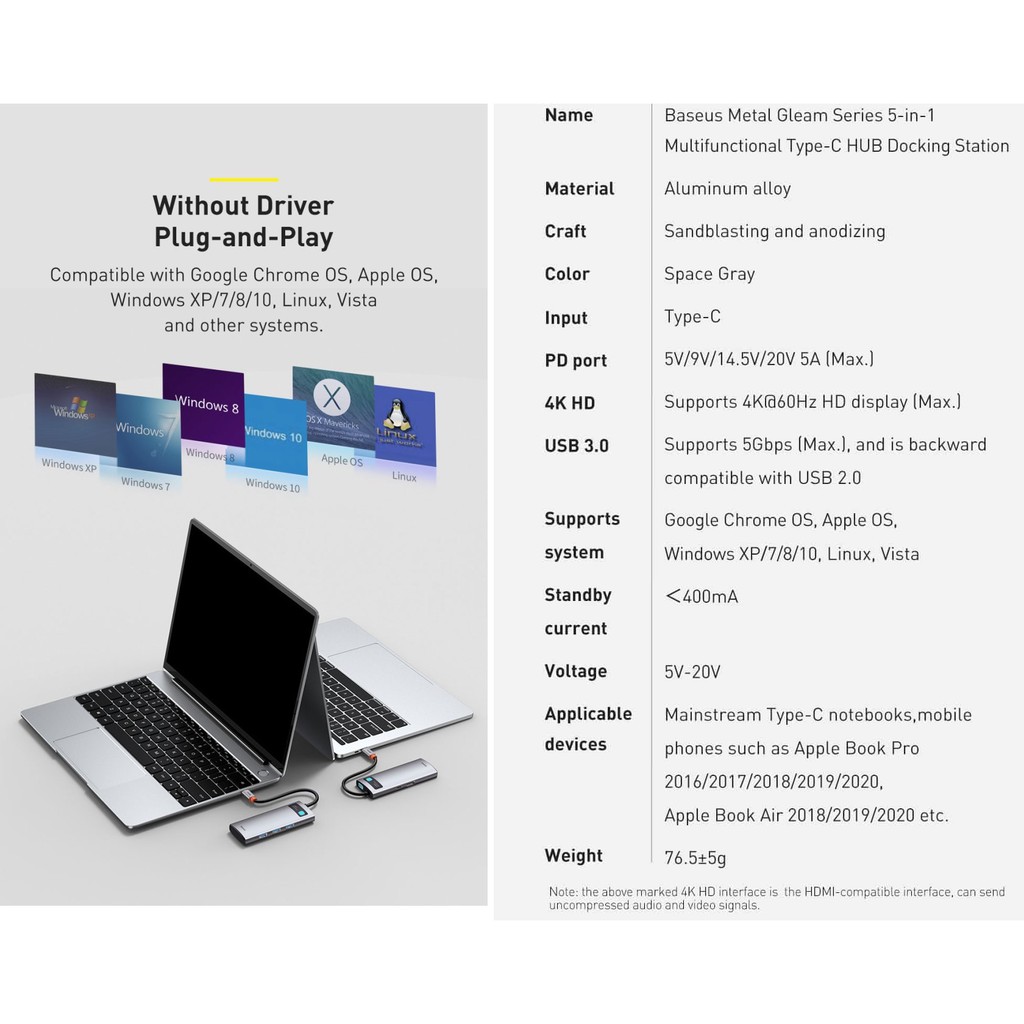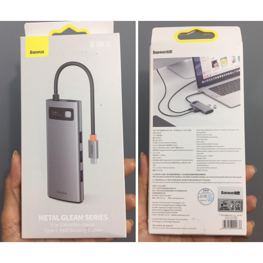Máy tính & Laptop > Phụ Kiện Máy Tính > Bộ chia cổng USB & Đọc thẻ nhớ || [Hub type-C 5 trong1] Bộ chia cổng Type-C Baseus Metal Gleam Series CAHUB-CX0GCòn hàng